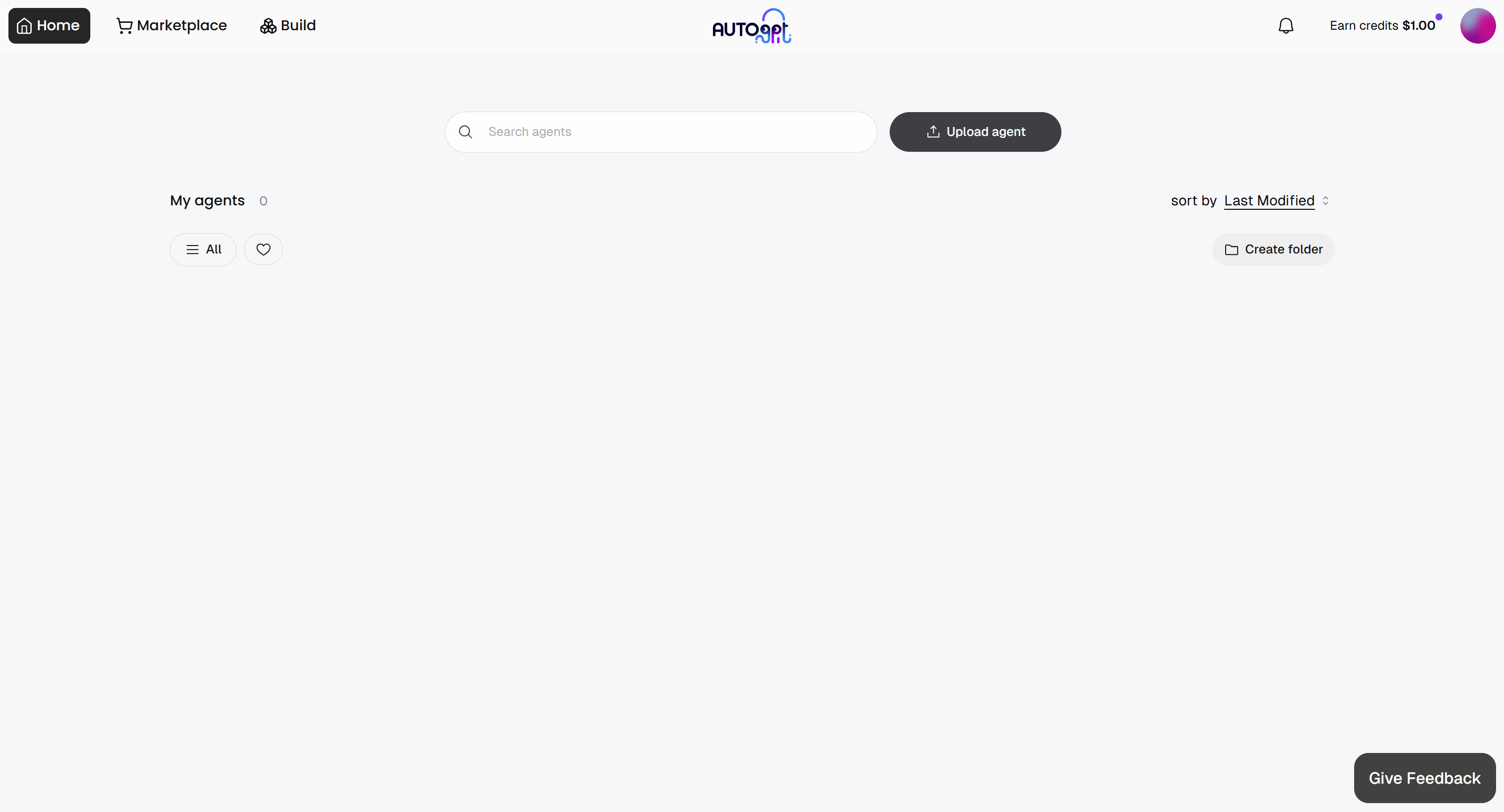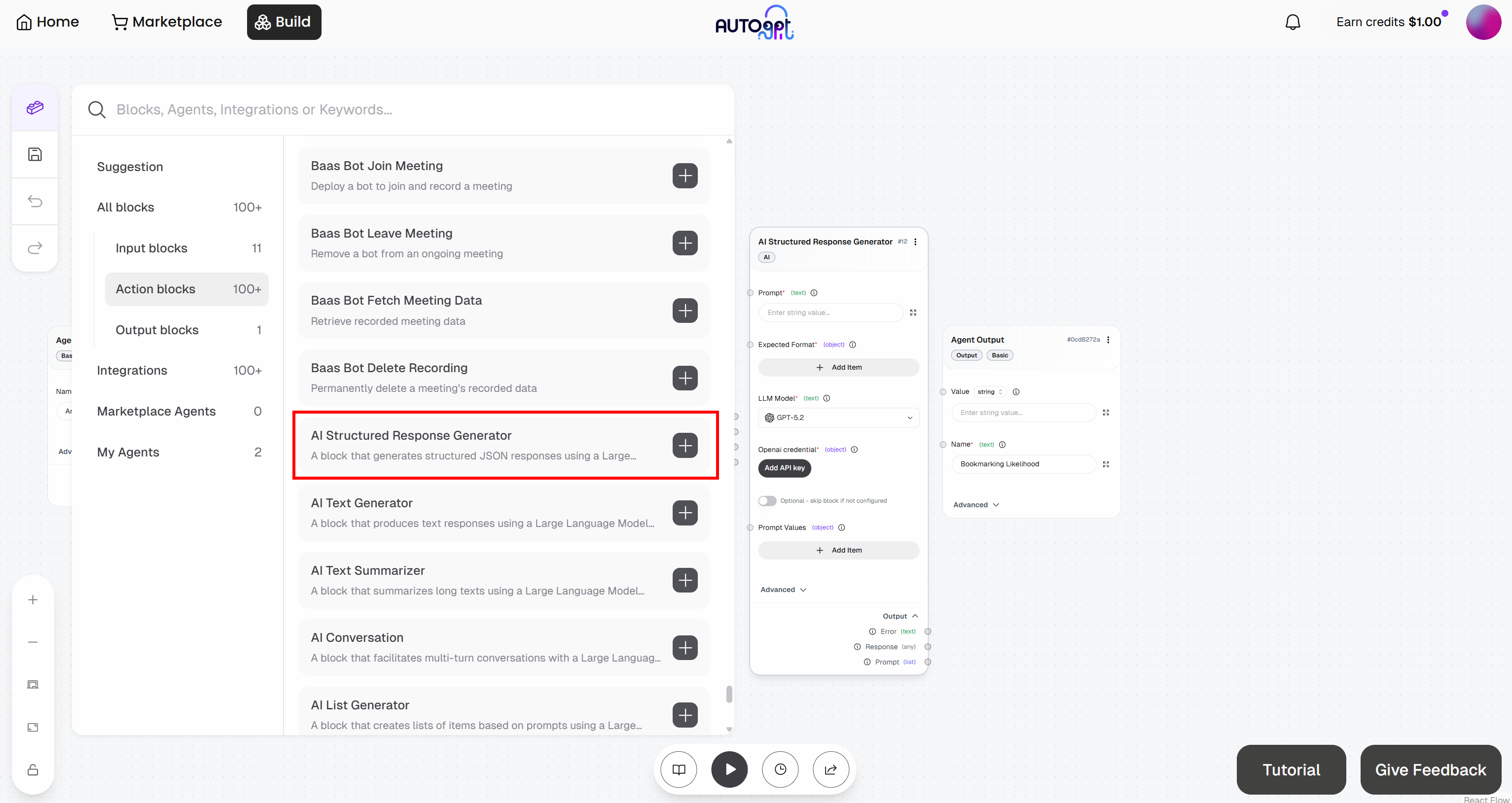 Every AutoGPT agentic workflow needs an input and an output. Start by going to the “Build” section to access the Agent Builder page: