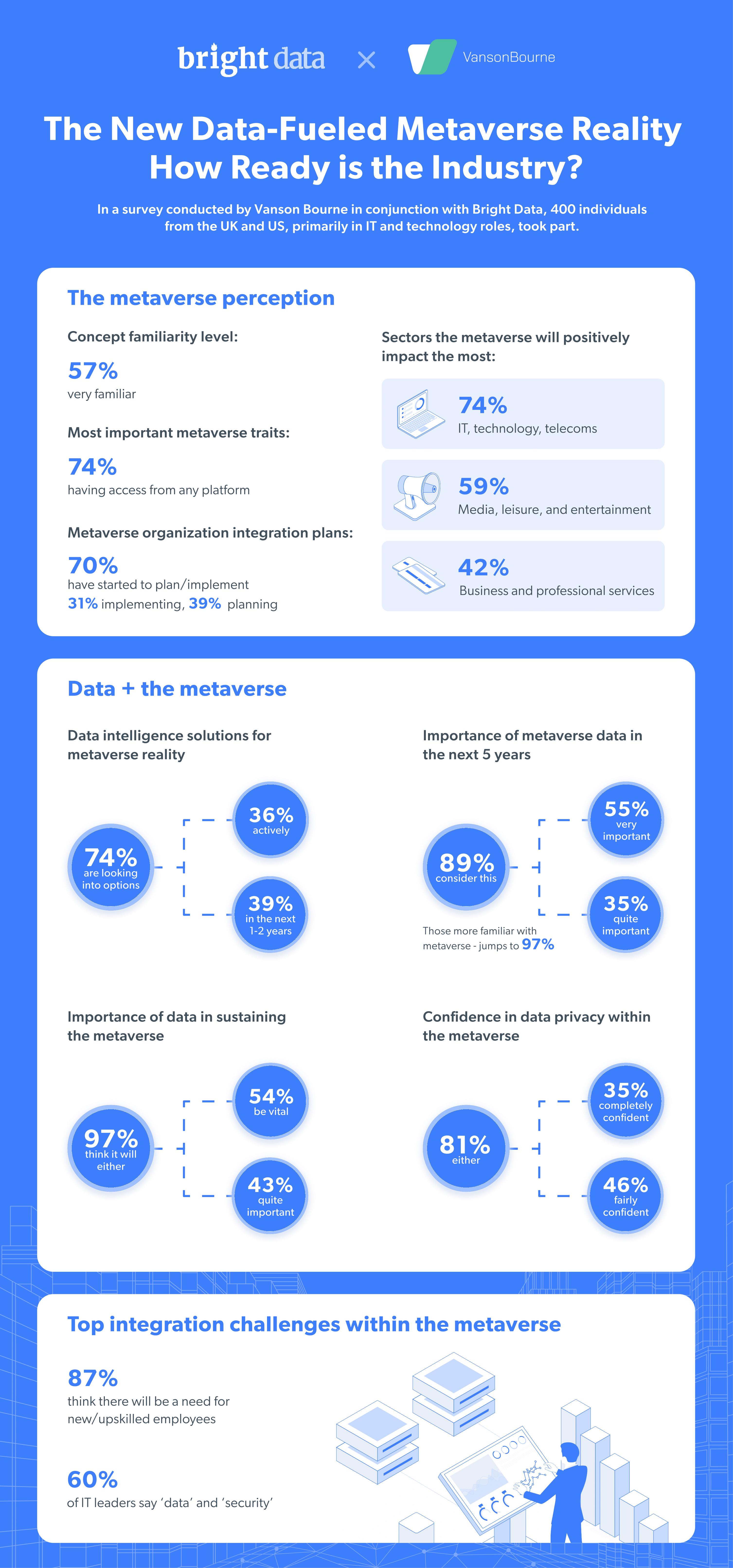 Seven out of ten (70%) C-suite executives are planning to integrate metaverse strategies into their business operations, according to a recent survey conducted by Bright Data in conjunction with Vanson Bourne.